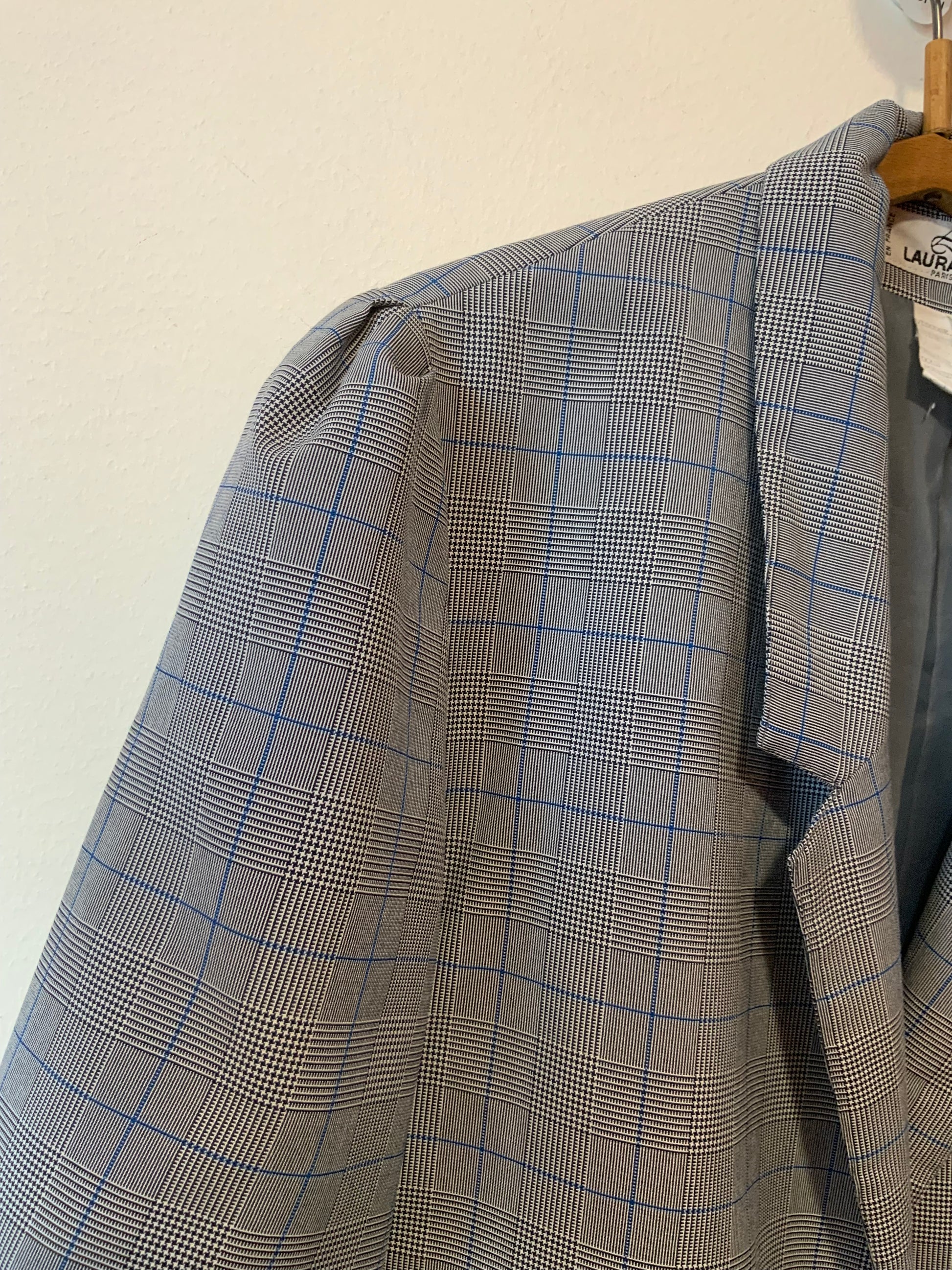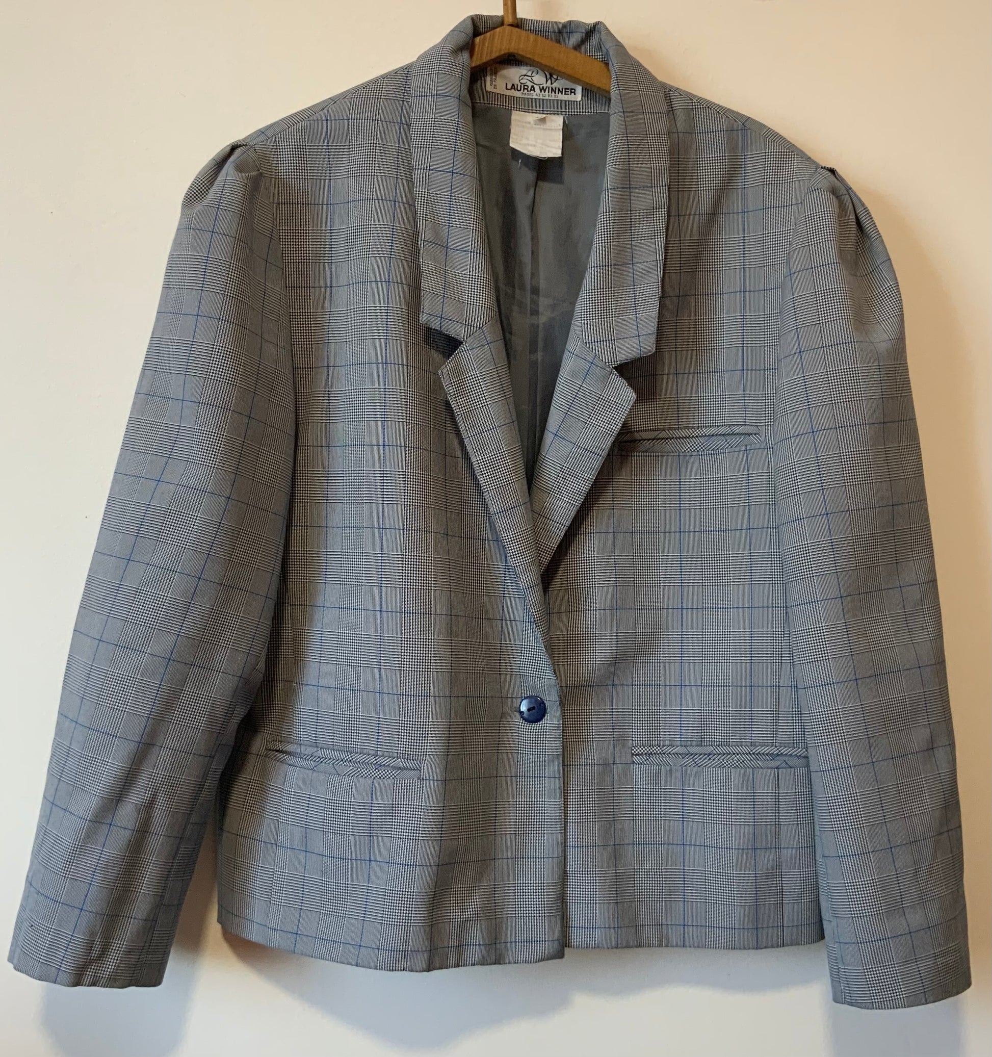 Veste droite à carreaux prince de Galles Vintage France 1980